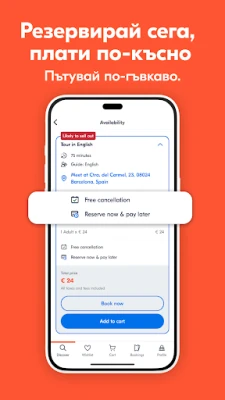 Насладете се на пълна гъвкавост и спокойствие при всяка резервация. GetYourGuide ви дава възможност да запазите желаните атракции сега и да платите по-късно, осигурявайки ви място без притеснения. Получавате незабавно потвърждение, независимо дали планирате отрано или търсите възможности в последния момент. А с опцията за офлайн билети, цялата ви информация е винаги на една ръка разстояние. Нашата многоезична денонощна поддръжка е на ваше разположение, а с безплатното анулиране до 24 часа преди повечето дейности, вашите планове остават винаги адаптивни.