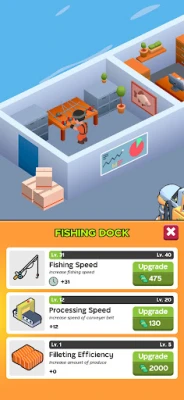 В My Fishing Market: Idle Empire ще започнете, като наемате опитни рибари, които ще ви помагат да събирате разнообразен улов – от обикновена риба до редки раци и скариди. Инвестирайте в модернизация на своя флот, купувайте по-големи и по-ефективни лодки, за да увеличите ежедневния си обем на улов и да разширите капацитета си. Не спирайте дотук – разгърнете своя потенциал, като отваряте луксозни ресторанти за морски дарове и атрактивни пазари, привличайки клиенти с ненадминати кулинарни шедьоври. Наблюдавайте как репутацията и печалбите ви нарастват стремглаво, докато изграждате силна марка.